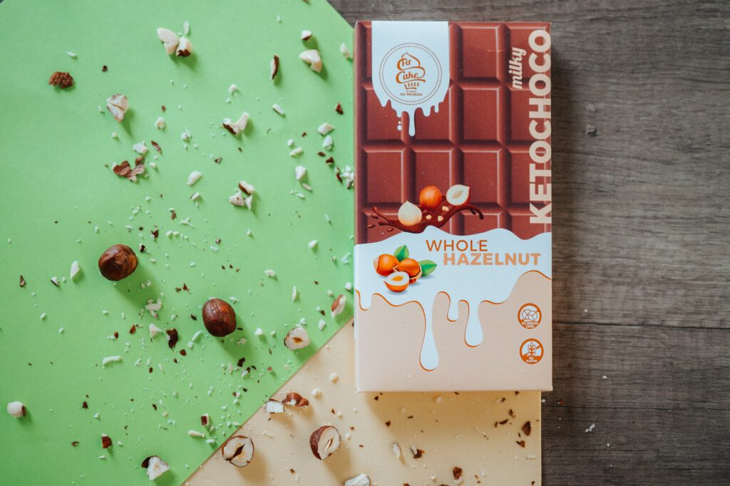 Cocoa fat, milk powder (25%), sweetener (erythritol 12.5%, stevia 0.02 g), inulin, cocoa pulp, skimmed milk, milk powder (10%), emulsifier (sunflower lecithin), natural flavouring (vanilla), hazelnuts.