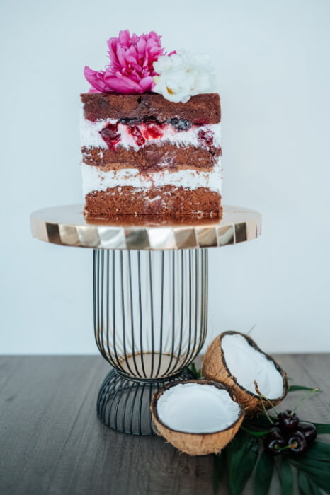 Mleczko kokosowe, wiśnie, kokos, jajka, mąka gryczana, kakao, gorzka czekolada, sól himalajska, substancja słodząca: erytrol.